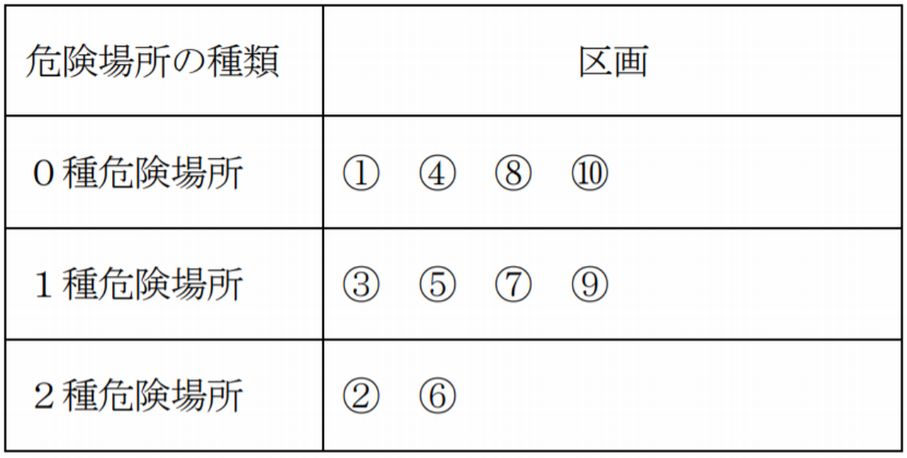 ② 1種危険場所と非危険場所とを分離するエアーロックを構成する区域